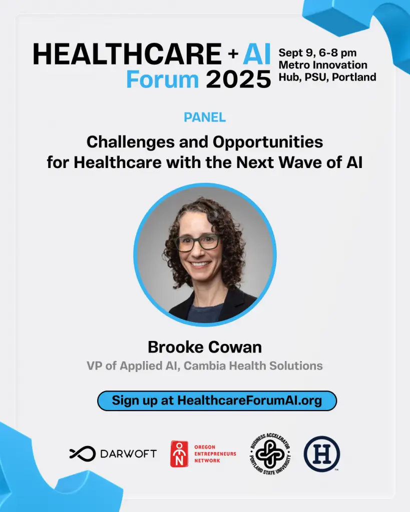Dr. Brooke Cowan is Vice President of Applied AI at Cambia Health Solutions, where she leads enterprise-wide AI strategy and oversees the development and deployment of AI solutions across core health insurance functions.